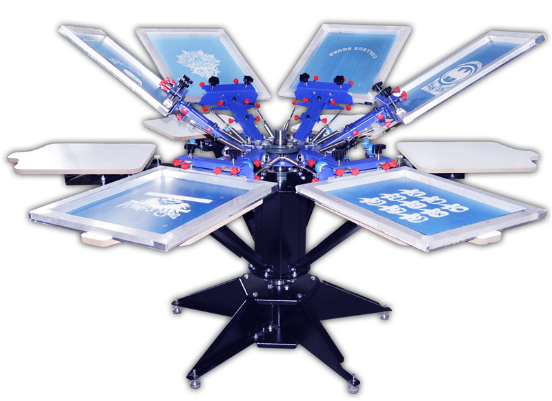 It is mainly used for the six colors T-shirt overprinting,it is configured with six screen frame chucks and six t-shirt pallet stations;