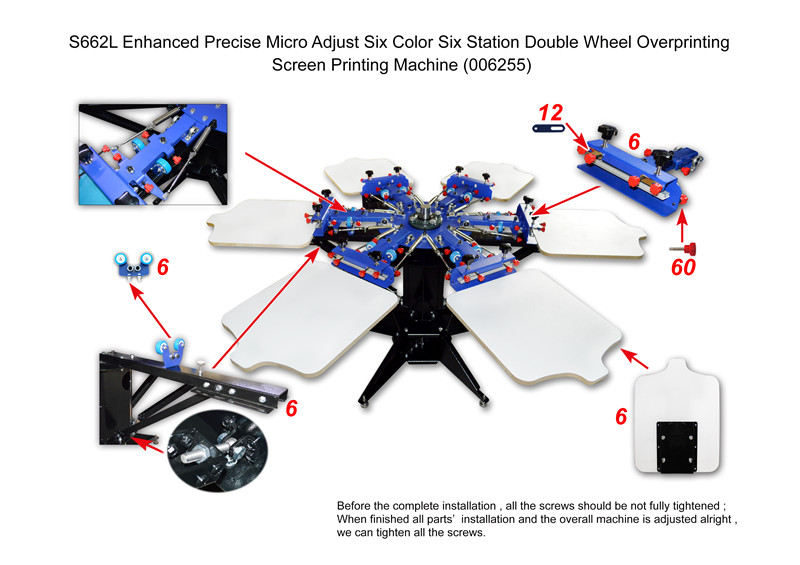 | Product Name | Enhanced Precise Micro Adjust Six Color Six Station Double Wheel Overprinting Screen Printing Machine S662L |