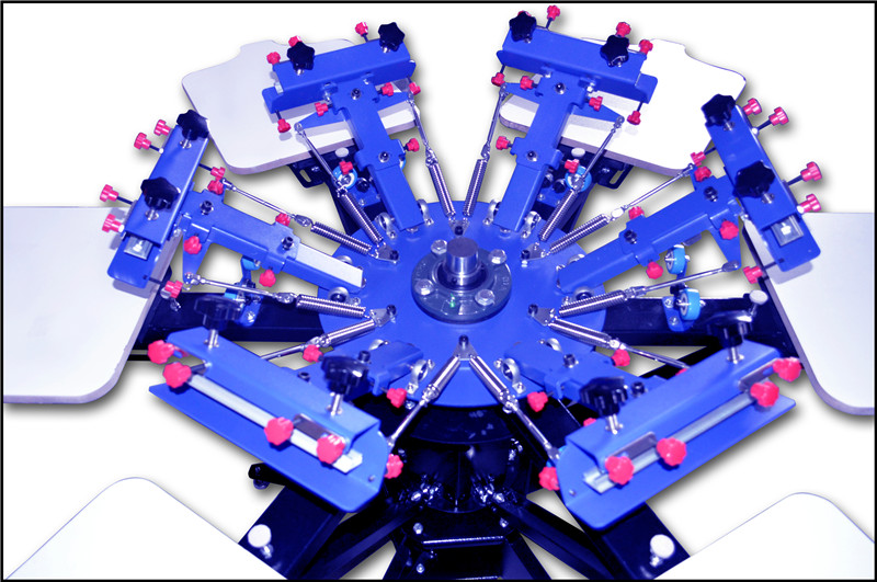 Both the pallet part and the screen frame part can rotate independently at 360 degree;Users can operate at any station; Each screen frame chuck is configured with manual micro adjusting knobs, to make sure the overprinting accurate.Adjustable reinforced support beam is installed at the bottom of each pallet,and it can make the pallet more stable, the printing more accurate.