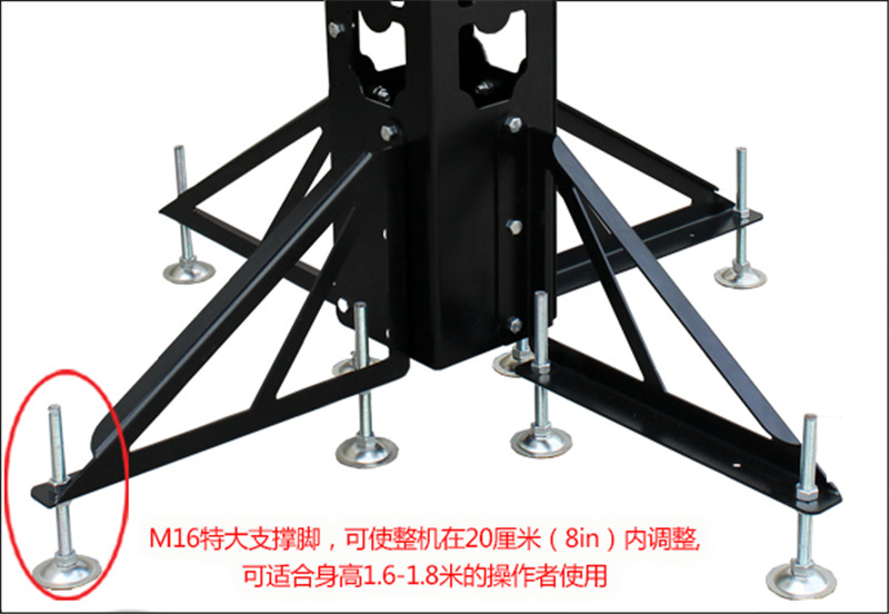 13. There are four supporting skew beams at the bottom of the machine .The machine is configured with 8 machine rack supporting feet, and it can adjust the height of the whole machine within 20cm (8in).